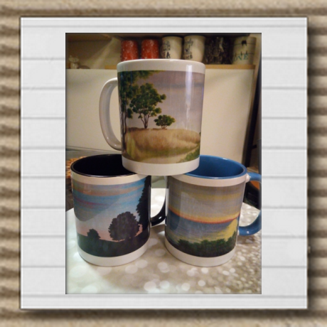 Limited supply available. Mugs show wrap-around images of Tina's original paintings.